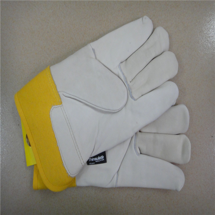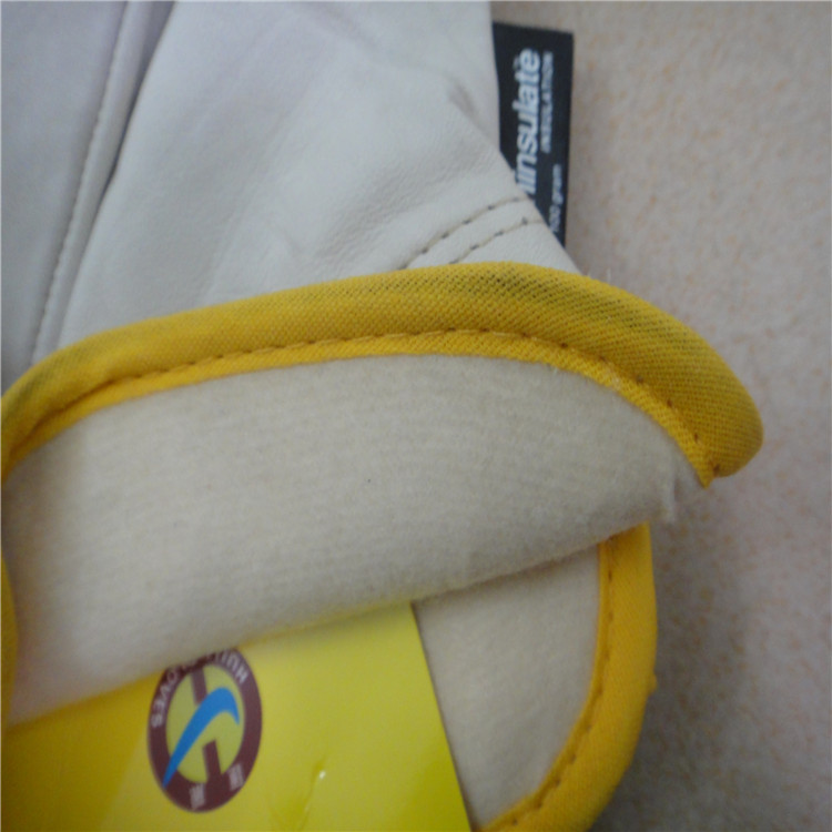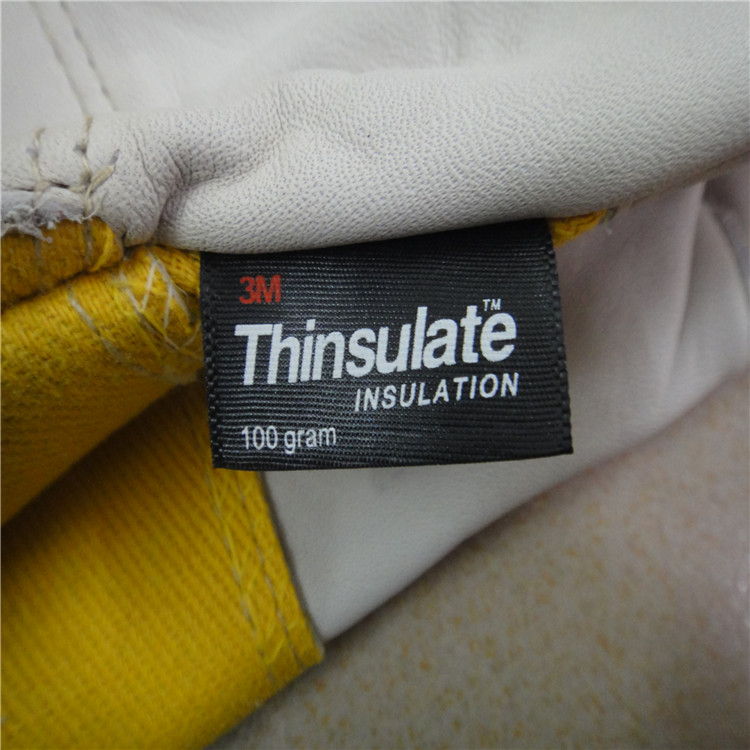 10.5寸杏色牛頭層皮工作手套,全掌款,純棉黃斜背布和膠袖,可車40g/100g保溫棉里,車黃邊。
