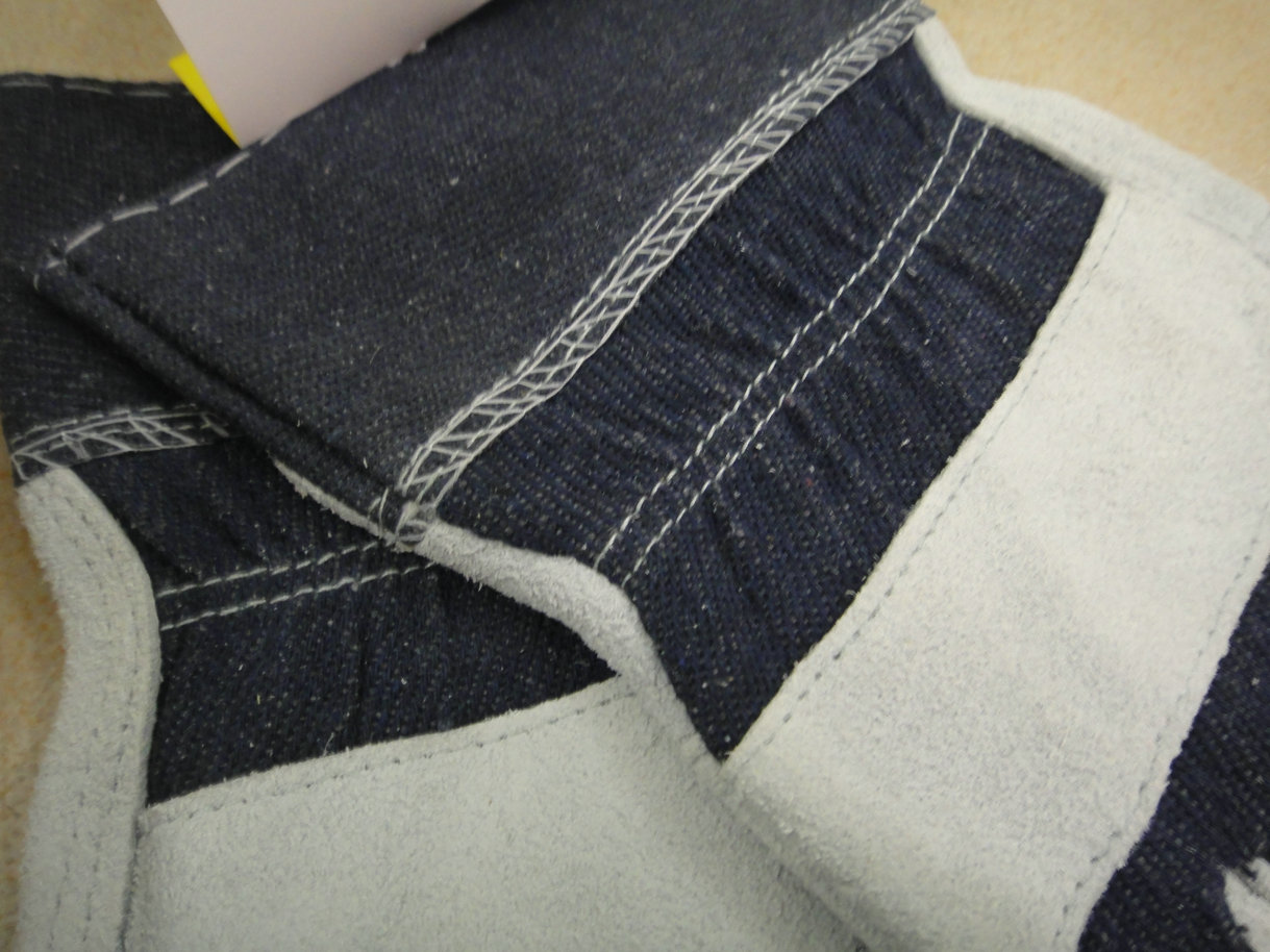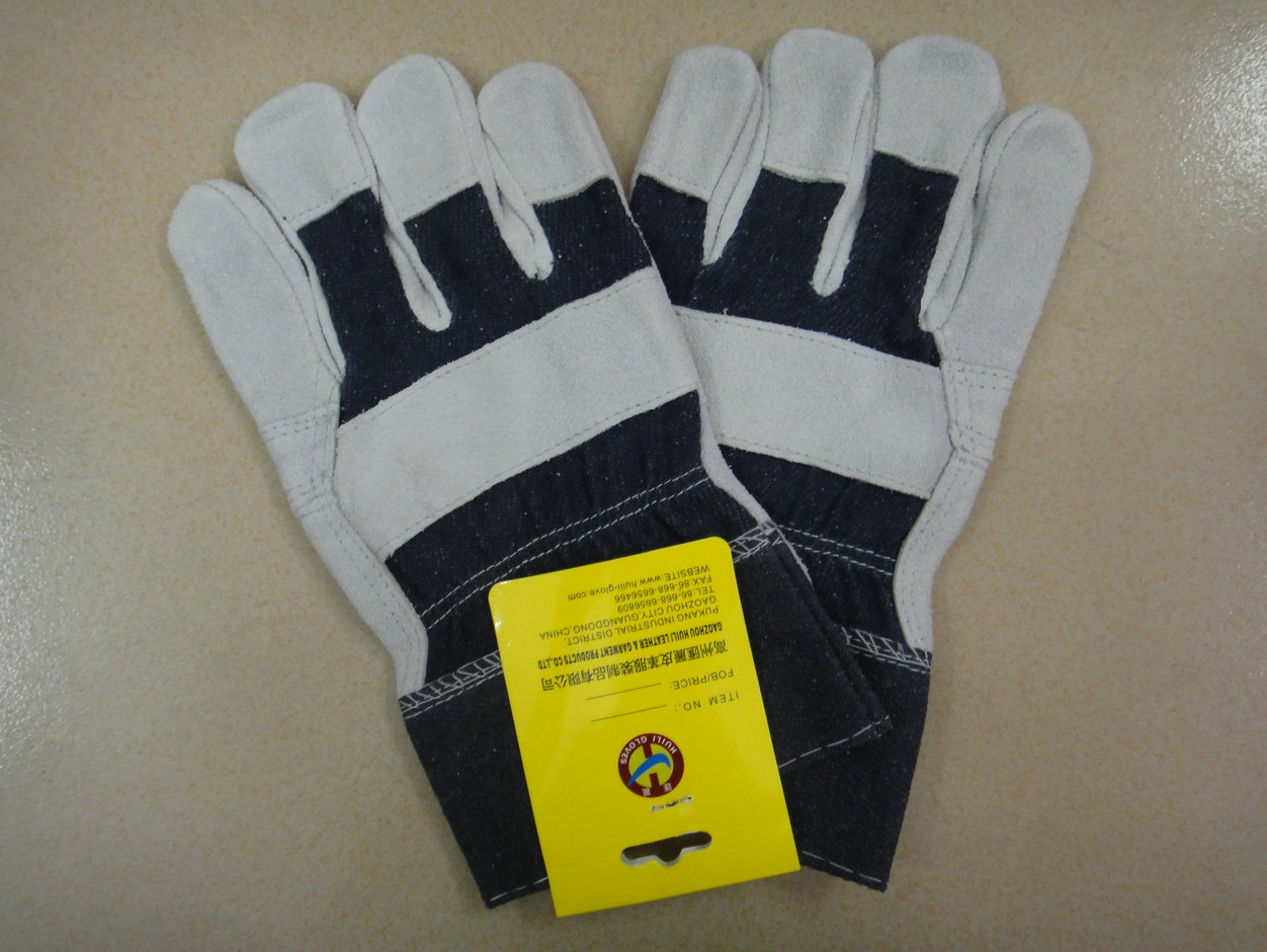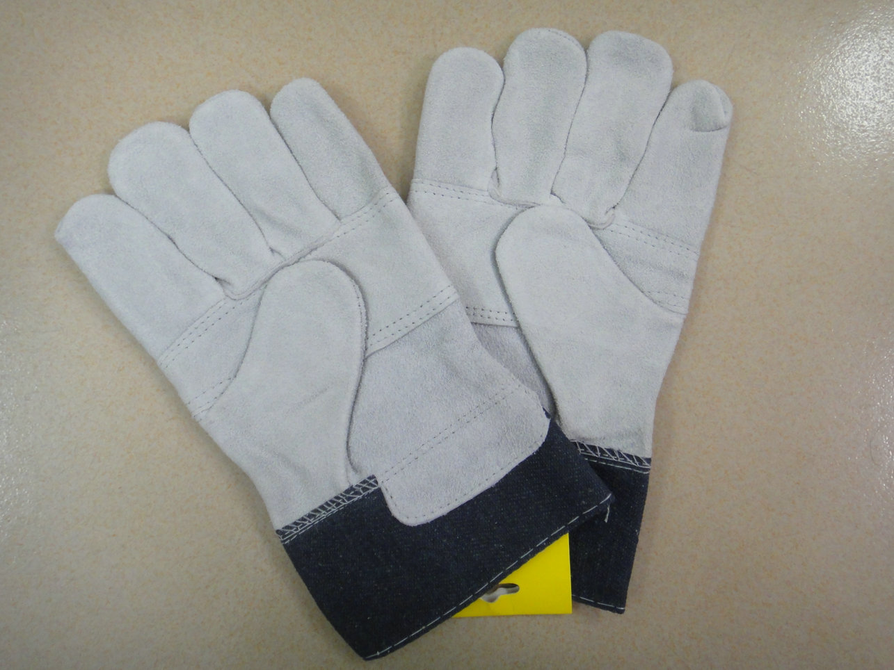10.5寸本色牛二層皮工作手套,駁掌,牛仔背布和漿袖,雜布半里。