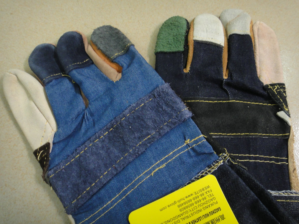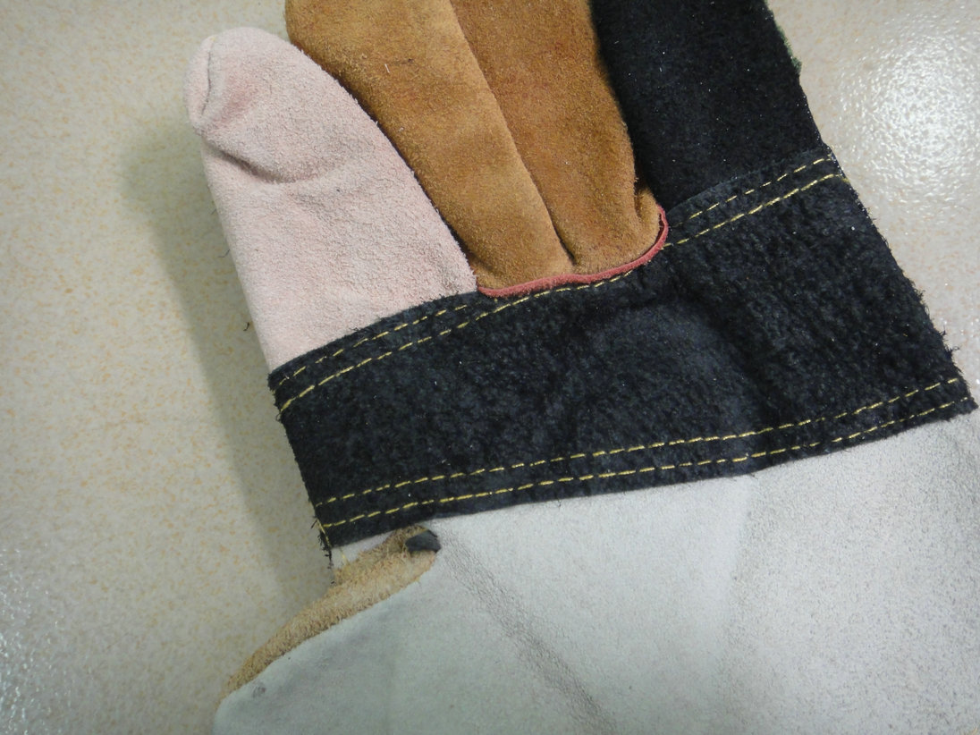 10.5寸七彩反絨家私皮工作手套,駁掌款,牛仔背布和漿袖,雜布半里。
