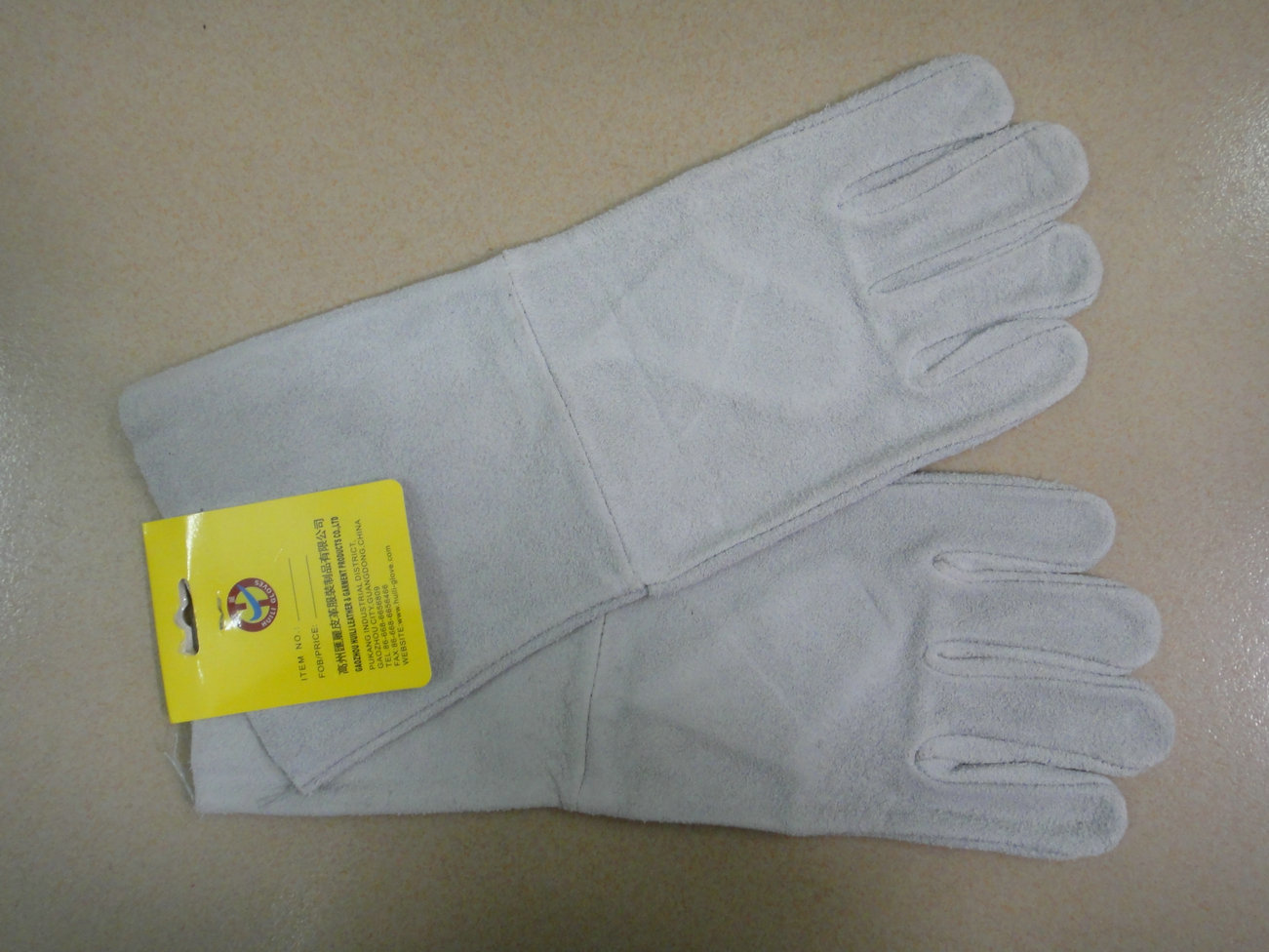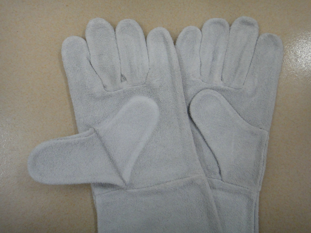 14寸本色牛二層皮全皮手套,88款,橫指,兩片背,切邊,無里。